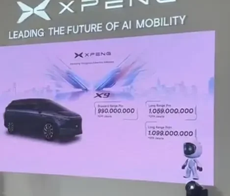 XPENG X9 Standard Range Pro: Rp. 990.000.000 Long Range Pro: Rp. 1.059.000.000 Long Range Pro+: Rp. 1.099.000.000 XPENG G6 (Limited Offer CBU) Standard Range Pro:…
